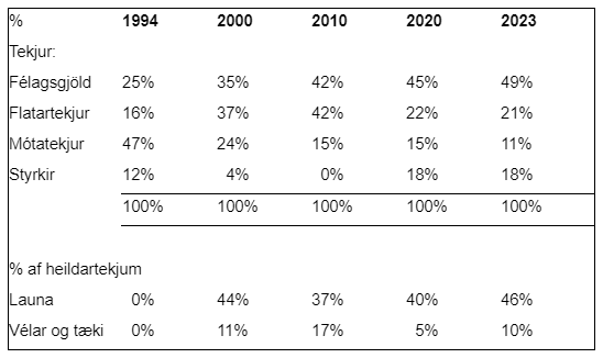 Tekjurnar fyrstu árin og breyttar forsendur seinni ára